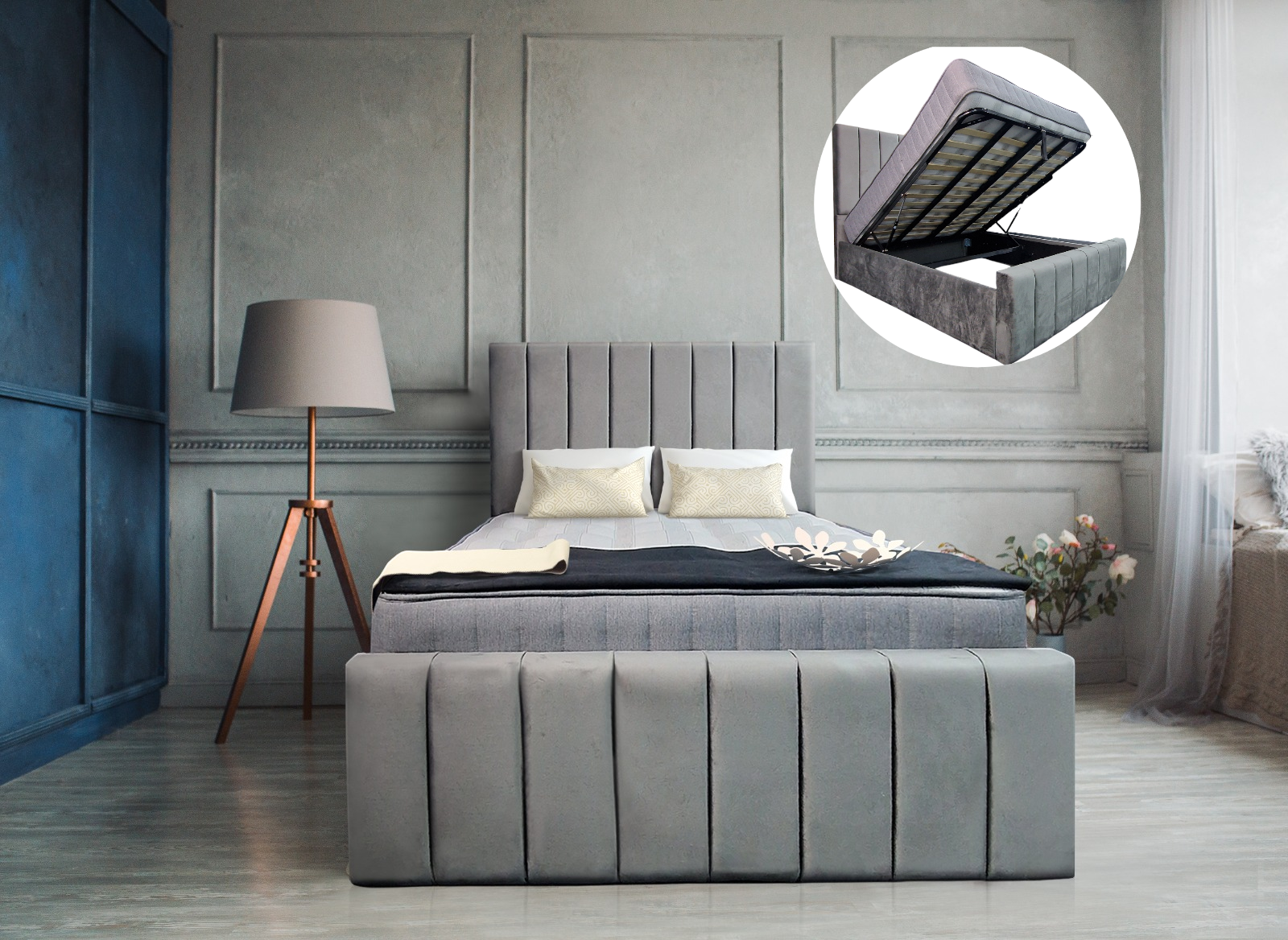 4ft6 double bed with tall headboard and gas lift storage £150